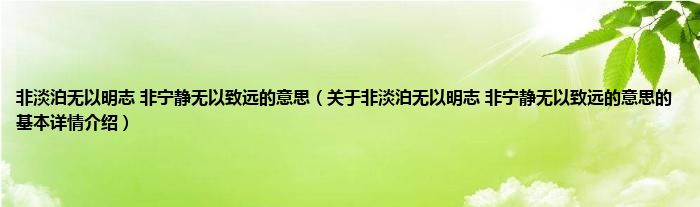 本文关于非淡泊无以明志 非宁静无以致远的意思的基本详情介绍就讲解完毕,希望对大家有所帮助。