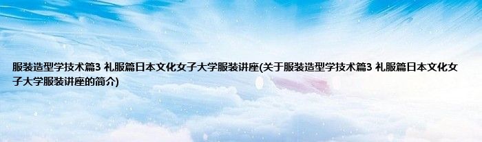 本文关于服装造型学技术篇3 礼服篇日本文化女子大学服装讲座的简介就讲解完毕,希望对大家有所帮助。