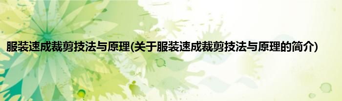 本文关于服装速成裁剪技法与原理的简介就讲解完毕,希望对大家有所帮助。
