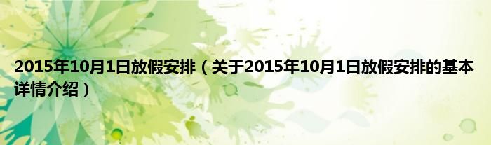 本文关于2015年10月1日放假安排的基本详情介绍就讲解完毕,希望对大家有所帮助。