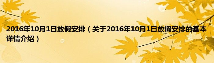 本文关于2016年10月1日放假安排的基本详情介绍就讲解完毕,希望对大家有所帮助。