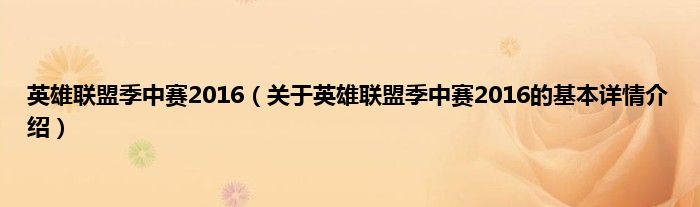 本文关于英雄联盟季中赛2016的基本详情介绍就讲解完毕,希望对大家有所帮助。