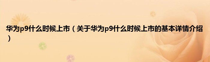 本文关于华为p9什么时候上市的基本详情介绍就讲解完毕,希望对大家有所帮助。