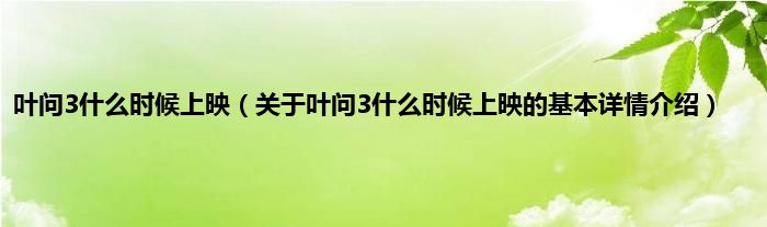 本文关于叶问3什么时候上映的基本详情介绍就讲解完毕,希望对大家有所帮助。