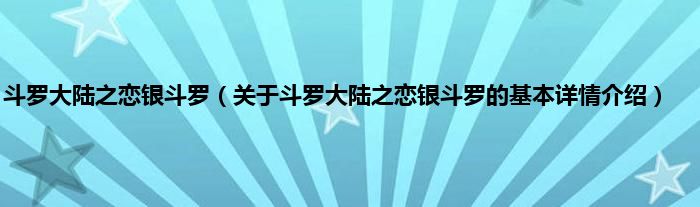 本文关于斗罗大陆之恋银斗罗的基本详情介绍就讲解完毕,希望对大家有所帮助。