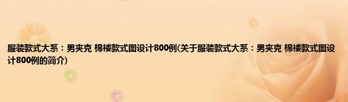 本文关于服装款式大系:男夹克。棉褛款式图设计800例的简介就讲解完毕,希望对大家有所帮助。