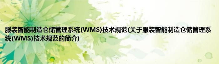 1、 《服装智能制造仓储管理系统(WMS)技术规范》是2019年12月09日实施的一项行业标准。