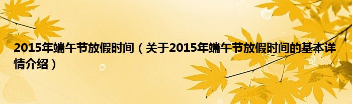 本文关于2015年端午节放假时间的基本详情介绍就讲解完毕,希望对大家有所帮助。