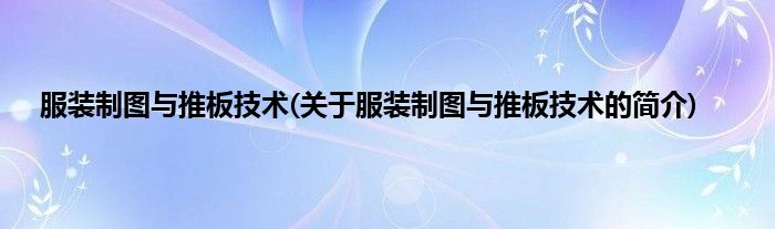 本文关于服装制图与推板技术的简介就讲解完毕,希望对大家有所帮助。