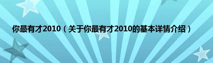 本文关于你最有才2010的基本详情介绍就讲解完毕,希望对大家有所帮助。