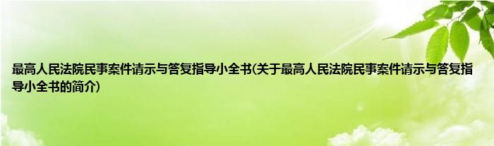 本文关于最高人民法院民事案件请示与答复指导小全书的简介就讲解完毕,希望对大家有所帮助。