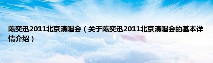本文关于陈奕迅2011北京演唱会的基本详情介绍就讲解完毕,希望对大家有所帮助。