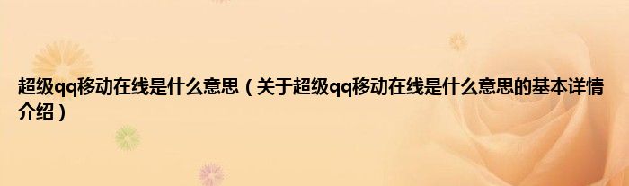 本文关于超级qq移动在线是什么意思的基本详情介绍就讲解完毕,希望对大家有所帮助。