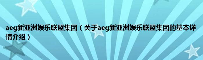 本文关于aeg新亚洲娱乐联盟集团的基本详情介绍就讲解完毕,希望对大家有所帮助。