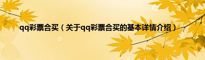 本文关于qq彩票合买的基本详情介绍就讲解完毕,希望对大家有所帮助。