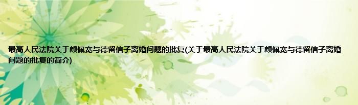 大家好,最高人民法院关于颜佩宽与德留信子离婚问题的批复,关于最高人民法院关于颜佩宽与德留信子离婚问题的批复的简介很多人还不知道,现在让我们一起来看看吧!