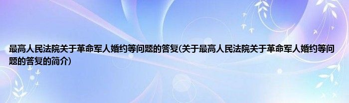 本文关于最高人民法院关于革命军人婚约等问题的答复的简介就讲解完毕,希望对大家有所帮助。