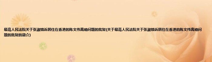 大家好,最高人民法院关于张淑娥诉居住在香港的陈文伟离婚问题的批复,关于最高人民法院关于张淑娥诉居住在香港的陈文伟离婚问题的批复的简介很多人还不知道,现在让我们一起来看看吧!