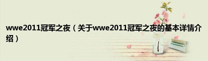本文关于wwe2011冠军之夜的基本详情介绍就讲解完毕,希望对大家有所帮助。