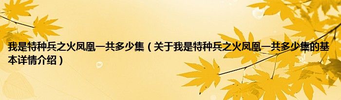 本文关于我是特种兵之火凤凰一共多少集的基本详情介绍就讲解完毕,希望对大家有所帮助。