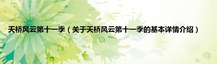 本文关于天桥风云第十一季的基本详情介绍就讲解完毕,希望对大家有所帮助。