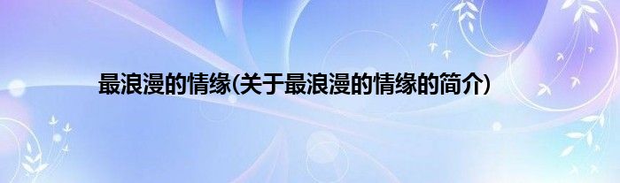 本文关于最浪漫的情缘的简介就讲解完毕,希望对大家有所帮助。