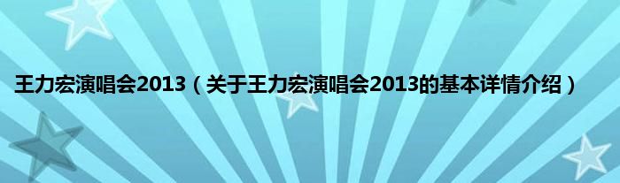 本文关于王力宏演唱会2013的基本详情介绍就讲解完毕,希望对大家有所帮助。