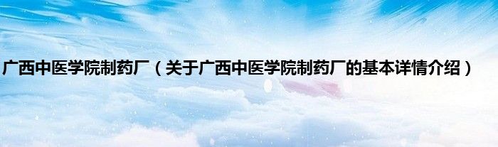 本文关于广西中医学院制药厂的基本详情介绍就讲解完毕,希望对大家有所帮助。