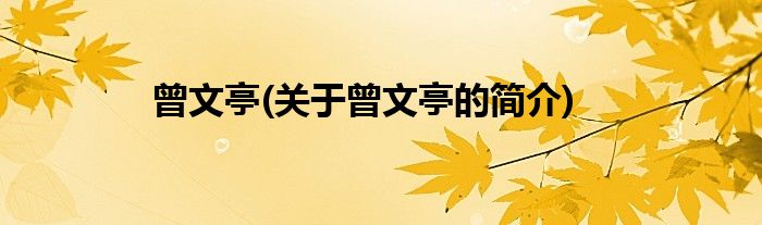 本文关于曾文亭的简介就讲解完毕,希望对大家有所帮助。