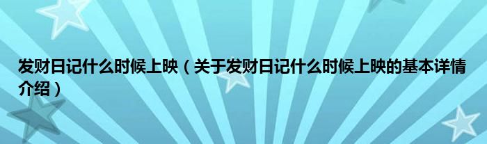 本文关于发财日记什么时候上映的基本详情介绍就讲解完毕,希望对大家有所帮助。