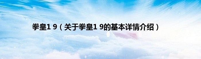 本文关于拳皇1 9的基本详情介绍就讲解完毕,希望对大家有所帮助。