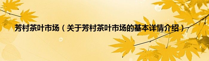 芳村茶叶市场(关于芳村茶叶市场的基本详情介绍)