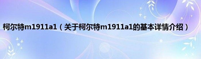 本文关于柯尔特m1911a1的基本详情介绍就讲解完毕,希望对大家有所帮助。
