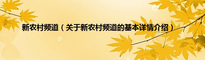 本文关于新农村频道的基本详情介绍就讲解完毕,希望对大家有所帮助。