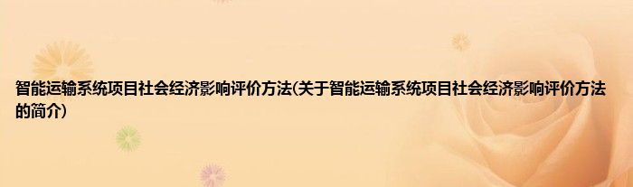 本文关于智能运输系统项目社会经济影响评价方法的简介就讲解完毕,希望对大家有所帮助。