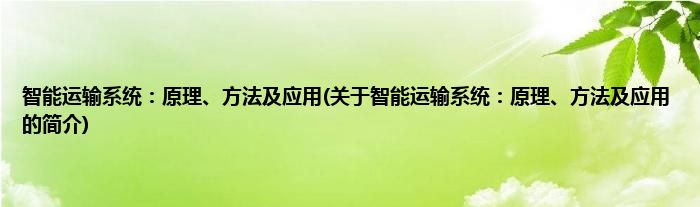 本文关于智能运输系统:原理、方法及应用的简介就讲解完毕,希望对大家有所帮助。