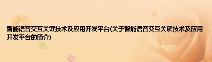 智能语音交互关键技术及应用开发平台(关于智能语音交互关键技术及应用开发平台的简介)