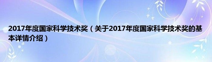 本文关于2017年度国家科学技术奖的基本详情介绍就讲解完毕,希望对大家有所帮助。