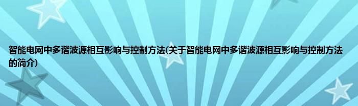 大家好,智能电网中多谐波源相互影响与控制方法,关于智能电网中多谐波源相互影响与控制方法的简介很多人还不知道,现在让我们一起来看看吧!