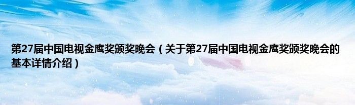本文关于第27届中国电视金鹰奖颁奖晚会的基本详情介绍就讲解完毕,希望对大家有所帮助。