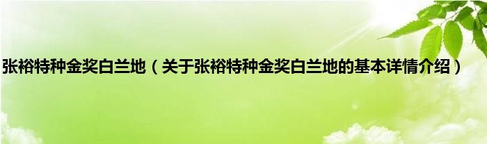 本文关于张裕特种金奖白兰地的基本详情介绍就讲解完毕,希望对大家有所帮助。