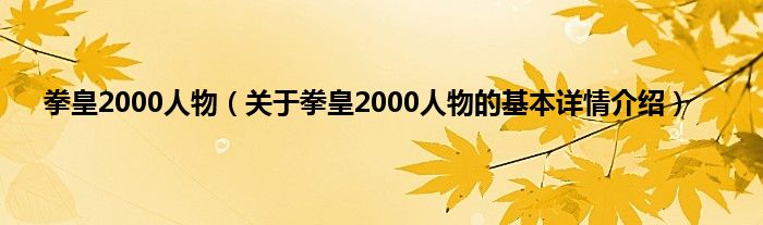 本文关于拳皇2000人物的基本详情介绍就讲解完毕,希望对大家有所帮助。