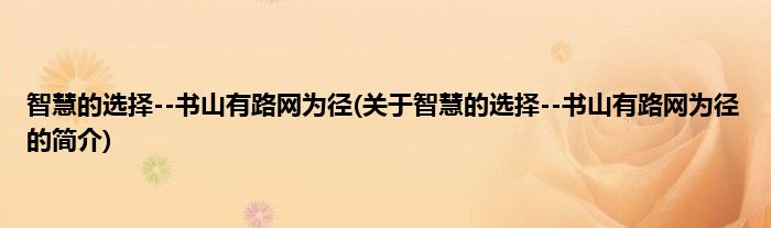 本文关于智慧的选择--书山有路网为径的简介就讲解完毕,希望对大家有所帮助。