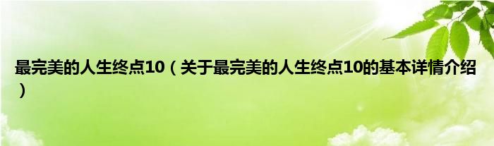 本文关于最完美的人生终点10的基本详情介绍就讲解完毕,希望对大家有所帮助。