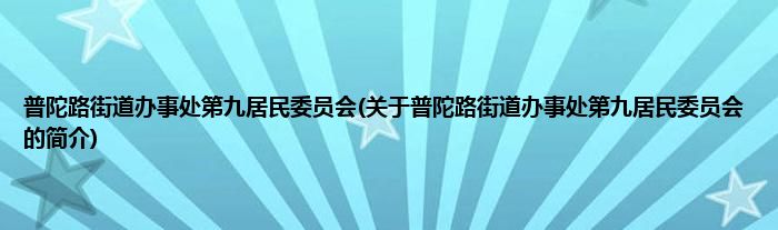 大家好,普陀路街道办事处第九居民委员会,关于普陀路街道办事处第九居民委员会的简介很多人还不知道,现在让我们一起来看看吧!
