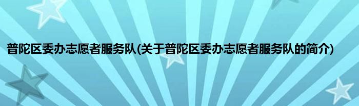 本文关于普陀区委办志愿者服务队的简介就讲解完毕,希望对大家有所帮助。
