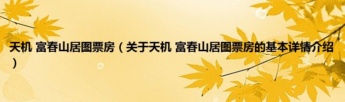 本文关于天机 富春山居图票房的基本详情介绍就讲解完毕,希望对大家有所帮助。