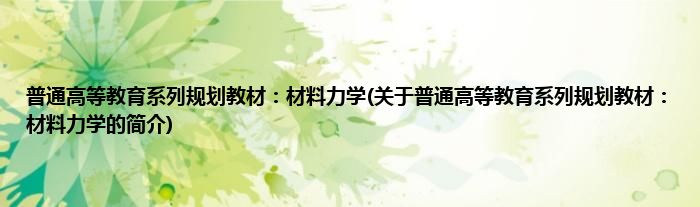 本文关于普通高等教育系列规划教材:材料力学的简介就讲解完毕,希望对大家有所帮助。