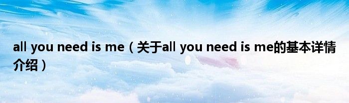 本文关于all you need is me的基本详情介绍就讲解完毕,希望对大家有所帮助。