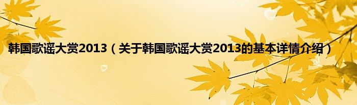 本文关于韩国歌谣大赏2013的基本详情介绍就讲解完毕,希望对大家有所帮助。